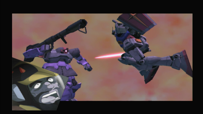 たとえば、原作第1話で襲い来るザクをガンダムのビームサーベルが刺し貫くシーンが登場しますが、これと同様にプレイヤーがビームサーベルでザクにトドメを刺せばこのシーンが再現されます。このシステムの良いところは、名場面を再現するかしないかがあくまでプレイヤーの手に委ねられていることです。