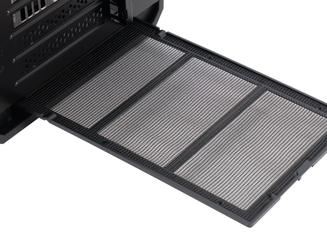 熱せられた空気をケース背面と上部から排出するエアフロー設計を採用。これにより、高性能な内部パーツを効率的に冷却し、ゲーム中のパフォーマンスを最大限に引き出します。また、本体底面には、ホコリの侵入を防ぐダストフィルターを装着。取り外して水洗いすることができ、常に清潔な状態を保つことが可能です。