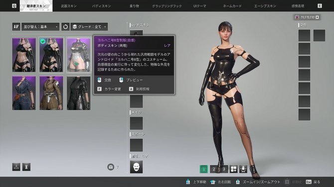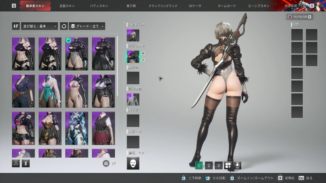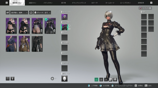 衣装はなんと女性キャラ共用となっているため、男性以外ならほぼどのキャラでも『ニーア オートマタ』衣装を着ることが可能。髪形と衣装が分けられているというのも「特定のキャラが2Bの衣装を着ている」あるいは「2Bが別の衣装を着ている」ように見えて、実にいいですね。