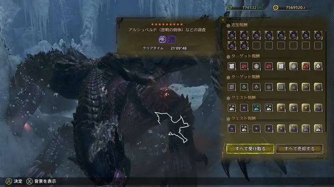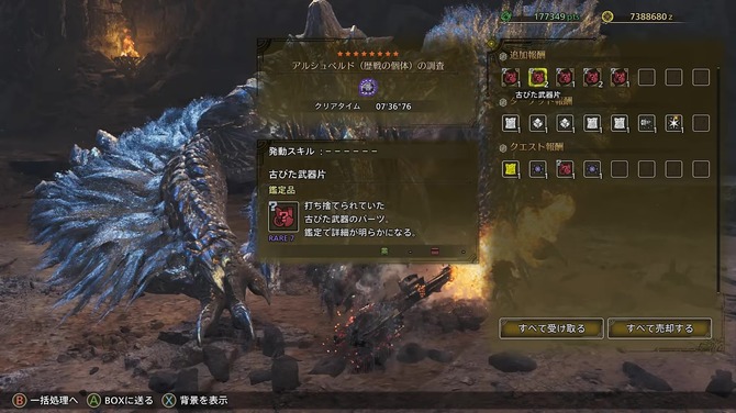 星5~8のモンスターには追加報酬として「アーティア武器」を生産するためのパーツを入手でき、プレイヤー側である程度ベース能力を調整できるほか、ランダムで5段階のステータス・ボーナスが付与される仕様です。“理想の武器”を作る場合、それなりに試行回数を重ねる必要があるため、本システムは発売当初のエンドコンテンツでした。