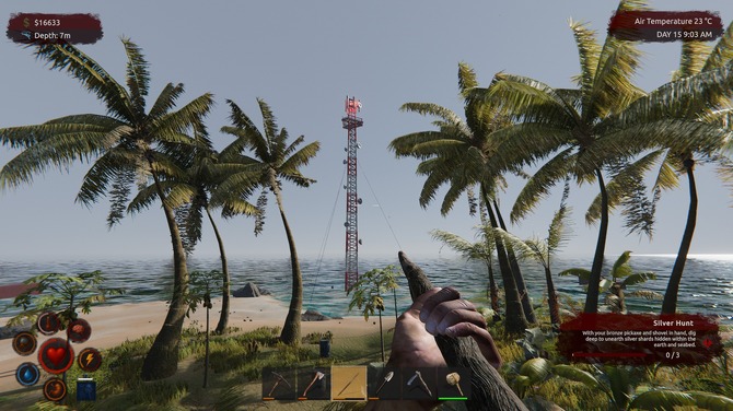 本作の舞台となるのは、さまざまな動物が生息している過酷な環境の無人島。プレイヤーは謎の人物達によって実験のために島に送り込まれた生存者となり、島から脱出するための道を探しながらサバイバルしていきます。生き残るためには狩りや採掘、拠点建設などの作業は欠かせません。