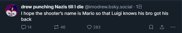 問題となっているのは、シニア・キャラクターアーティストのドリュー・ハリソン氏の投稿。彼女は自身のSNS(Bluesky)で、チャーリー・カーク氏の射殺事件を受け、「犯人の名前がマリオだといいな。そうすればルイージは兄が味方だとわかるからね」と投稿しました。