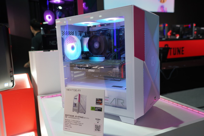 ステージイベントの興奮冷めやらぬ中、マウスコンピューターの「G TUNE・NEXTGEAR」ブースへ。こちらでは、最新のゲーミングPCが多数展示されており、その性能を実際に体感することができます。
