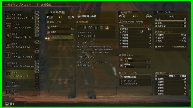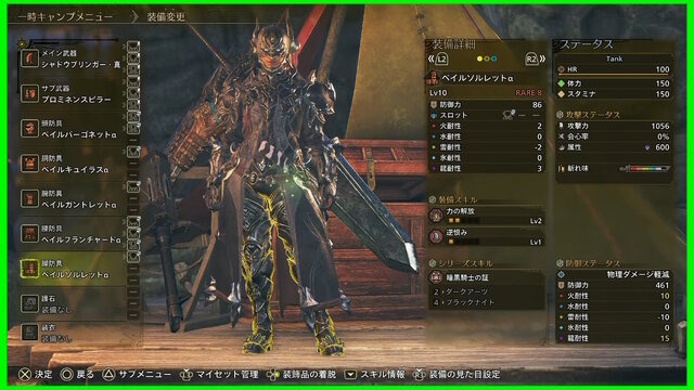 また、番組内では「暗黒騎士」をイメージした防具「ベイルアーマーα」と大剣「シャドウブリンガー」の性能やスキルも公開されています。