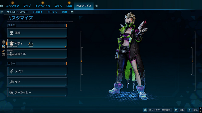 今回の使用キャラクターは「ラファ」で、「エクソソルジャー」という役職名がついてますね。「ボーダーランズ」はシリーズを通して「普通に撃ち合うときに強い」「オーソドックスなFPSらしい操作感で楽しめる」というキャラクターが1人はいて、今回はあえてスタンダードなタイプで遊びたくて選んでみました。