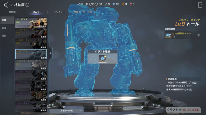 とはいえ、初めに手に入る神機は簡素なもの。正直この「工業用を兵器転用したぜ!」みたいなビジュアルも好きですが、レアリティが伝説級になると相当カッコよい機体に乗れちゃいます。GvGなどでハイエンドな神機に乗り込むとかなり目立つことでしょう。