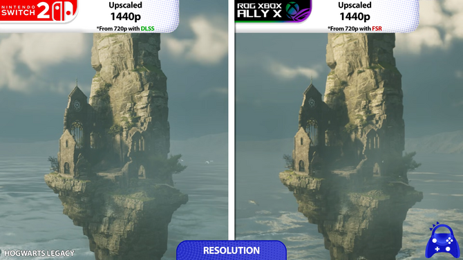 『ホグワーツ・レガシー』でのグラフィック比較。スイッチ2・Xbox Ally Xともに大きな差はないように見えます。