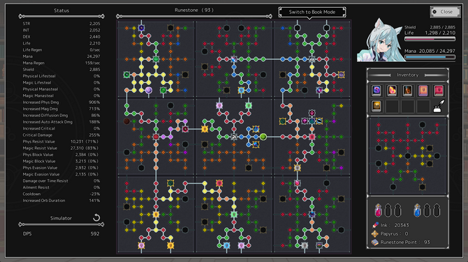 『エルバブ』は、ビルド構築を主軸としたローグライト・オートバトルゲームです。マス目を選択し進んで、ダンジョン系ゲームのような進行が楽しめます。戦闘は全てオートバトルなので、ながらプレイにも最適です。