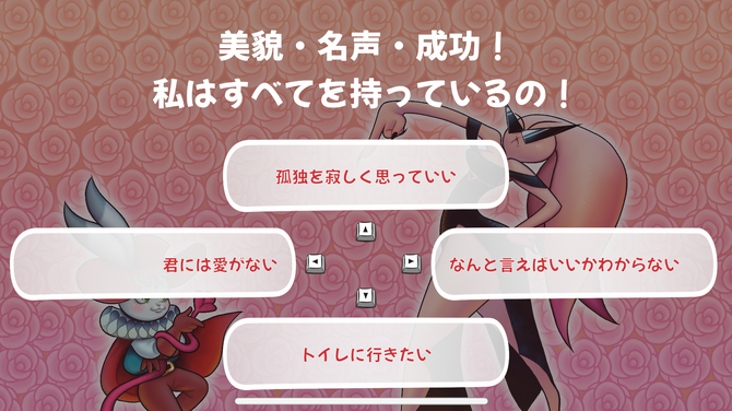 もちろんそれだけがテーマの作品ではないのですが、こういった経緯を考えると、この作品は非常に愉快なエンタメ作品であると同時に、Onon氏という1人のクリエイターが自らの内面を赤裸々に表現した、非常に作家性の強いアドベンチャーゲームであるとも解釈できます。