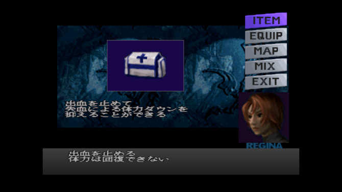 調合(MIX)システムは、入手した素材(薬品)や弾薬を組み合わせて、より強力な回復アイテムや麻酔弾を作成できる重要なシステムです。上記のように恐竜は耐久力が非常に高く、通常の弾薬だけで倒しきるのは困難であるため、材料を調合して作った「麻酔弾」で眠らせて敵を回避するという、独特の戦闘システムを持っています。