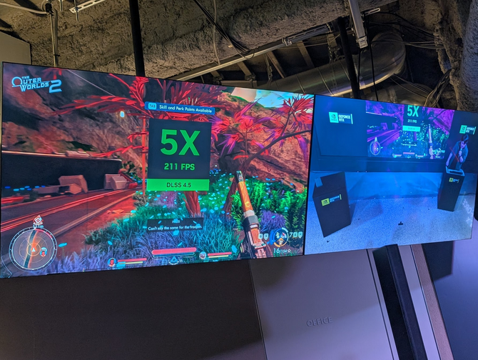 DLSS 4.5では、従来のフレーム生成をさらに推し進めた「最大6倍」のマルチフレーム生成が可能になったとのこと。これはつまり、本来60Hzで動作しているゲームを300Hz以上の超高リフレッシュレートで動いているかのような滑らかさでプレイできることを意味します(モニターが対応している場合)。