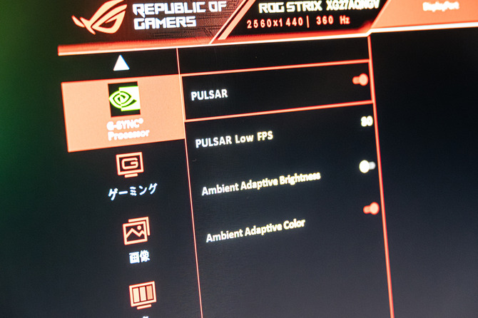 会場では、実際にロゴが動く様子をPulsar機能のオン/オフで比較できましたが、その差は歴然。筆者はミリ秒の差を気にするほどの「研ぎ澄まされた目」を持つ競技勢ゲーマーではありませんが、そんな一般ゲーマーの目から見ても、ハッキリと違いがわかるほど描画が鮮明でした。画像の鮮明さは、理論上1,000Hz超のリフレッシュレートに匹敵するそうです。