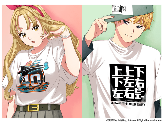 また、Amazonが展開するオンデマンド・プリントサービス「Merch on Demand(マーチ オンデマンド)」にて、記念デザインTシャツが販売。「↑↑↓↓←→←→BA」や『グラディウス』40周年記念ロゴをモチーフにしたデザインなど、ゲームファンが日常でも楽しめる内容となっています。