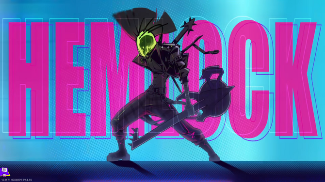 まずはボスの「ヘムロック」に挑戦。ヘムロックを選択した瞬間に表示されるこちらの“スタイリッシュ”な画面と、「Carpenter Brut」(※1)の「Maniac」にテンションブチ上がり。元々筆者の好きなアーティストであり、本作を遊びたい!と思ったきっかけのトレイラーで流れていたため、「いつこの曲で遊べるのだろう」と密かに楽しみにしていたのですが、まさか最初から遊べるとは思わず嬉しい誤算でした。