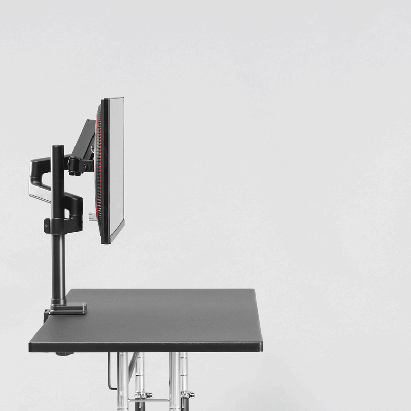 モニターの高さや角度、前後の位置を自由に調整できる、多軸設計を採用しました。作業内容やプレイスタイルに合わせて、モニターを最適なポジションに簡単にセットできます。FPSゲームで集中したいときは画面を正面に、動画鑑賞でくつろぎたいときは見上げるように設置…など、手軽に環境を切り替えることが可能です。