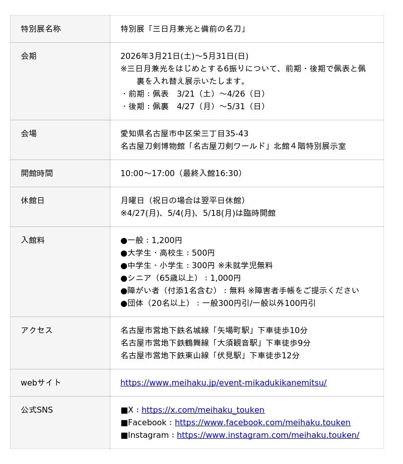 特別展「三日月兼光と備前の名刀」 4/27(月)より後期展示スタート